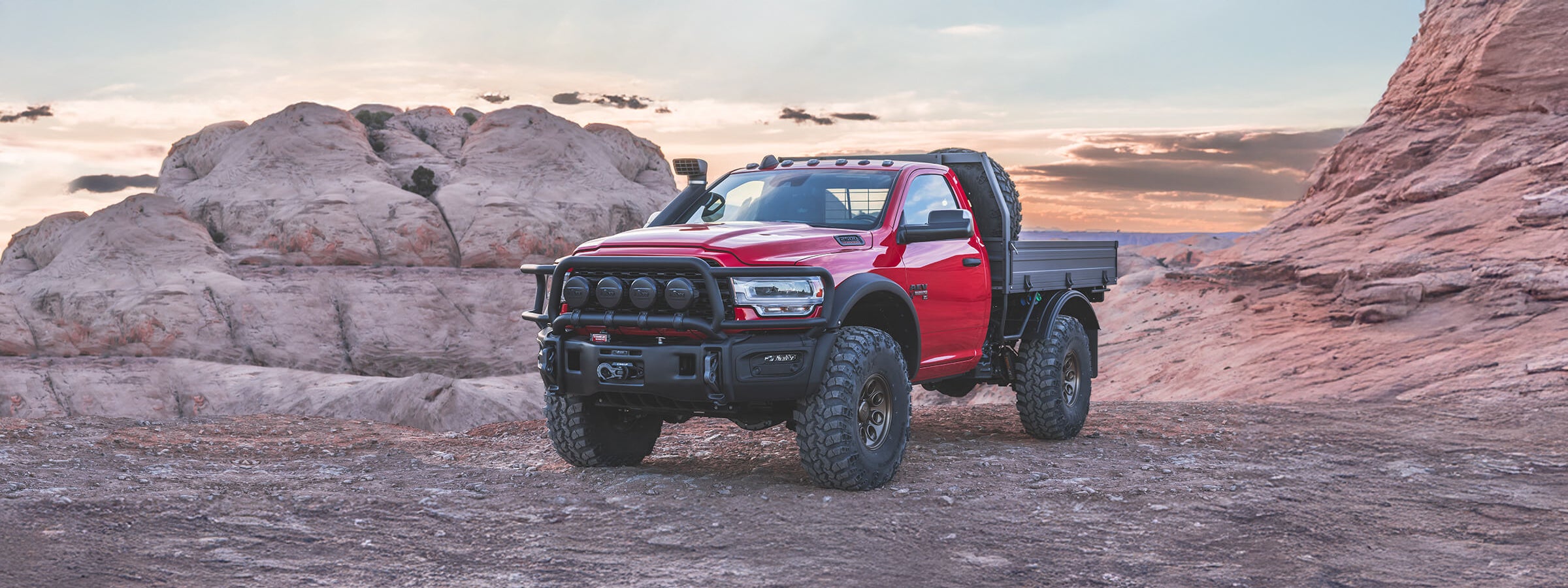 As a proven platform that is well-suited for adventure travelers and outdoor recreationalists alike, the AEV Prospector XL Tray Bed for sale is still a heavy-duty truck at heart, capable of towing heavy loads and carrying a significant payload. Despite its massive 40″ BFGoodrich tires, the Prospector XL Tray Bed has a relatively low center of gravity. This, combined with a 3″ DualSport Suspension, gives this adventure-ready truck the superior ride quality, handling and capability that AEV-built vehicles are known for.