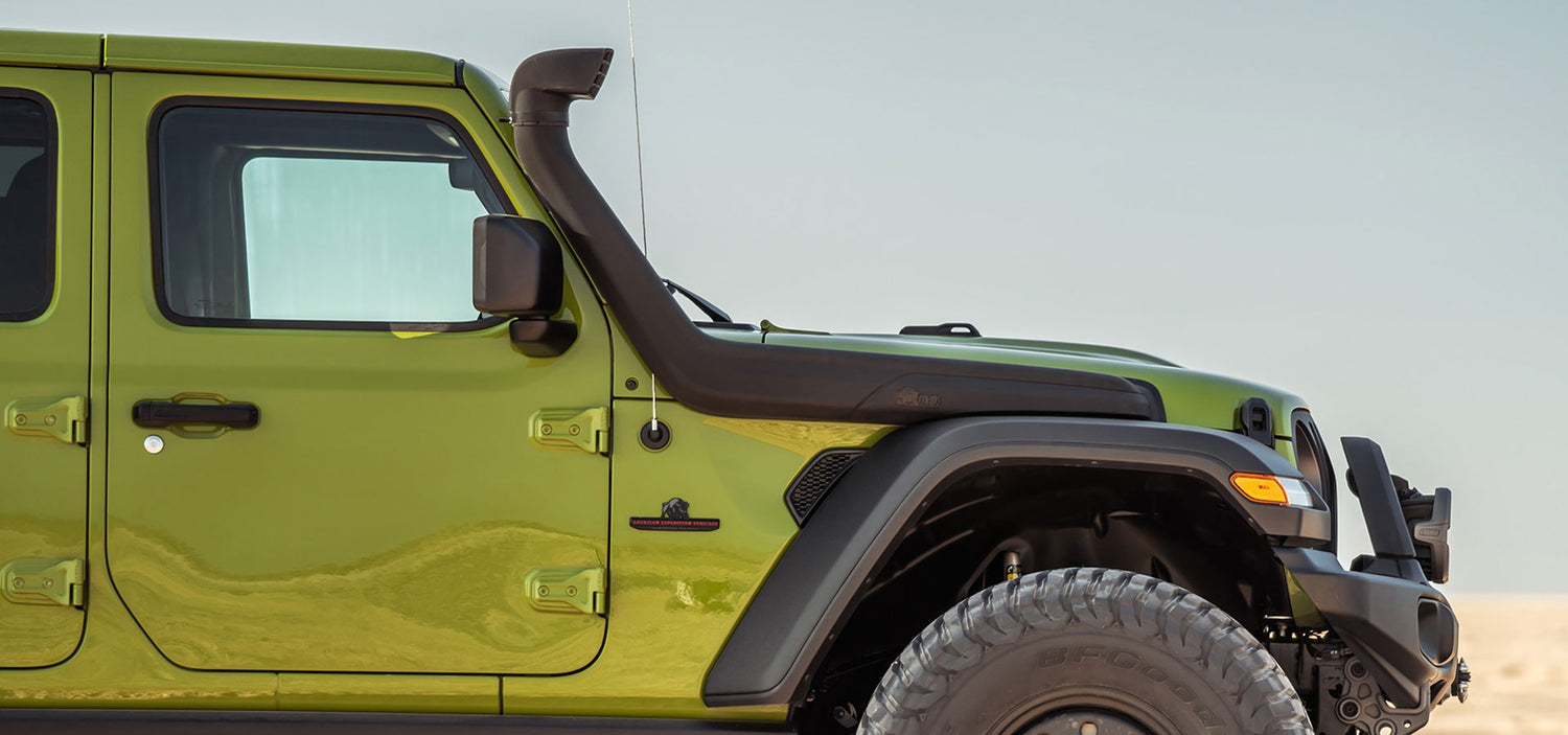 Inspired by heavy duty industrial and military applications around the world, AEV’s JL Wrangler Snorkel Kit is designed to improve engine performance by drawing in the cleanest, coolest air charge possible, even in the worst conditions. If you are serious about off-road adventure, the an AEV Snorkel is one of the most important modifications you can make.